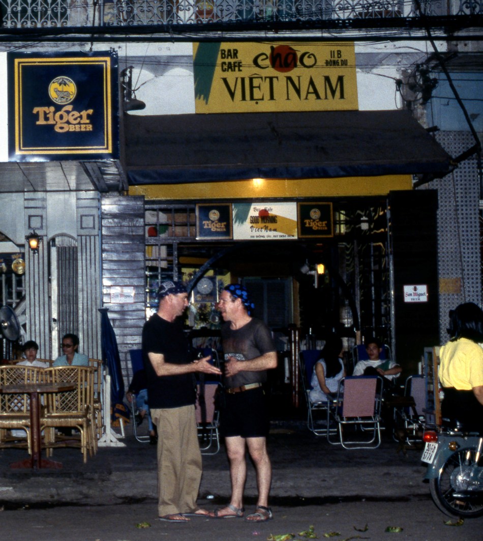 The cyclo driver lost control and swerved hard right. Richards’s feet hit the ground; no way he could stay on them. He tumbled ass over end while I find my self flying through the air in a sitting position, Bam landing hard on my butt. Bouncing along on my ass I see the cyclo run over Richard, the driver jumping off because the cyclo looked like it was going to jump the rail and end up the river. No it hangs up in the guardrail which is a good thing because they run the electrical power wires just over the railing. I look over at Richard he is covered in scummy mud, his hand and elbow scraped up and bleeding, my ass hurts and I’m sure covered with road rash. The driver is the only one unscathed and looks like he’s not sure whether to laugh or not but starts anyway. Richard looks at me and starts laughing. I’m frowning. “What’s wrong Bruce you hurt”? Well it doesn’t hurt too much now but Richard we lost the race. “Well Bruce, its nothing another beer wont cure besides now you know Cyclo racing is not for the faint of heart. Were all laughing as getting back in the cyclo we head for home.